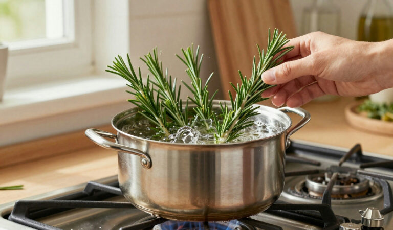 Bollire il rosmarino arricchisce l'ambiente domestico, migliorando umore e concentrazione grazie al suo profumo e alle sue proprietà benefiche.