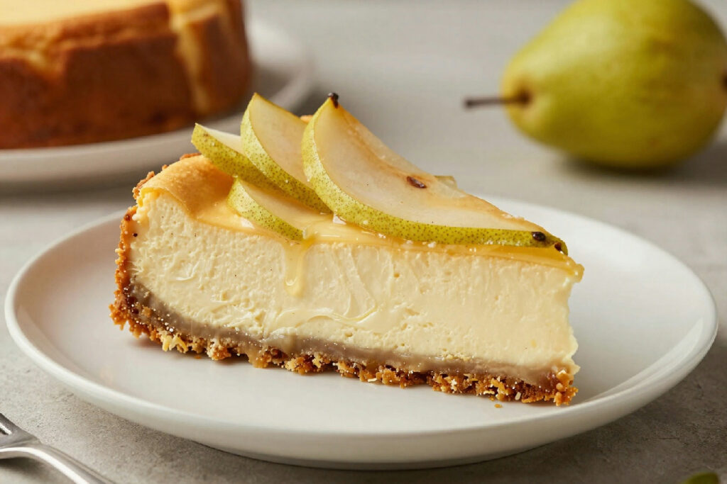 Cheesecake con pere e zenzero: un dessert che combina freschezza e sapore in modo equilibrato