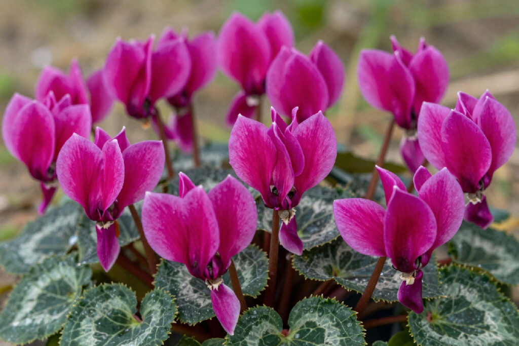 - Quanto spesso devo bagnare i ciclamini? Dipende dall’umidità del terreno; controlla regolarmente e bagna quando è asciutto.
