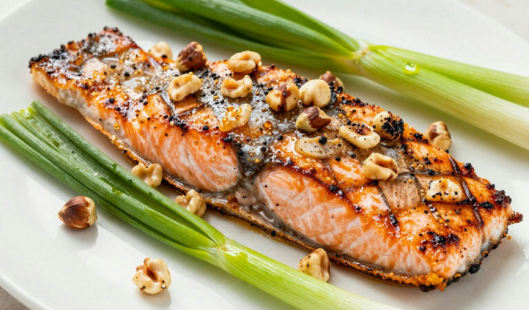 Filetto di trota salmonata con nocciole e porri grigliati: un pasto gourmet da provare a casa