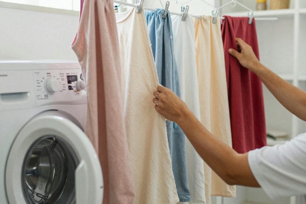 Una volta che hai tolto le tende dalla lavatrice, non strizzarle come faresti con altri capi. Questo potrebbe danneggiare il tessuto. Invece, stendile delicatamente per rimuovere l’eccesso d’acqua. A questo punto, il trucco continua: appendi le tende direttamente su una pertica, un filo di nylon o un bastone per tende. Questo passaggio è cruciale per mantenere la forma originale e prevenire le pieghe. Sai qual è il trucco? Appendere le tende mentre sono ancora leggermente umide può aiutare a ridurre ulteriormente le pieghe.