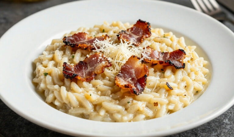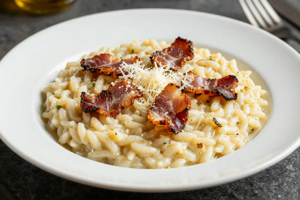 Il risotto alla carbonara sta conquistando gli italiani, combinando la cremosità del risotto con il sapore della carbonara tradizionale.